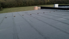 Strecha po rekonštrukcii (2023): Plochá strecha s kvalitnou izoláciou a krytinou z asfaltových pásov s minerálnym posypom.